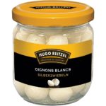 Oignons Borettana (Italie), eau, vinaigre balsamique 14.9% (avec SULFITE; vinaigre de vin, moût de raisin concentré, colorant: E150d), sucre, sel de cuisine, huile de tournesol, antioxydant (E300), correcteur d’acidité (acide citrique).